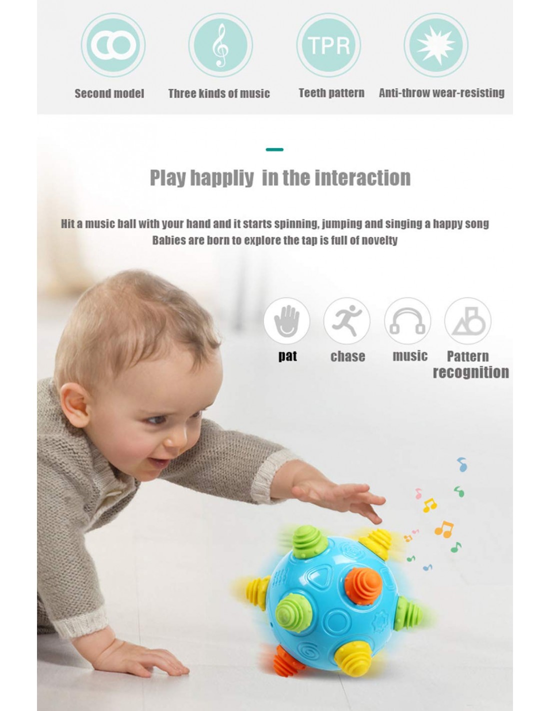 - Esta adorable bola motorizada autoenrollable animará a tu bebé a seguirlo felizmente gatear, caminar o saltar. Interesantes sonidos y bolas de rebote atraen a los bebés y les anima a explorar y reconocer cosas nuevas, regalo de Navidad o Año Nuevo